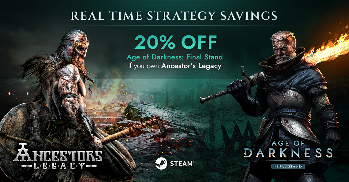 Today we have an exclusive offer for all the owners of Ancestors Legacy! You can now get Age of Darkness: Final Stand, a brand new RTS game that has just been released in Early Access by our friends at Team 17, with a 20% discount for the first week (10% loyalty + 10% launch discount)!