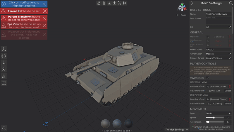 Custom ground vehicles are finally here! You can find the editor right next to the other creators in the main menu. The functionality is similar to vanilla vehicles, and —as usual— you can use your custom vehicles anywhere vanilla vehicles are supported.