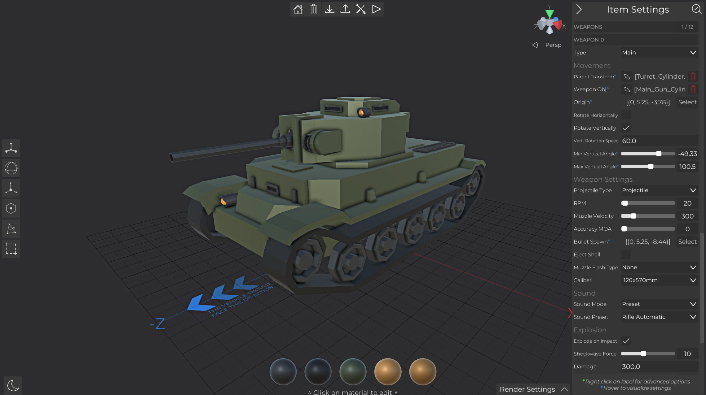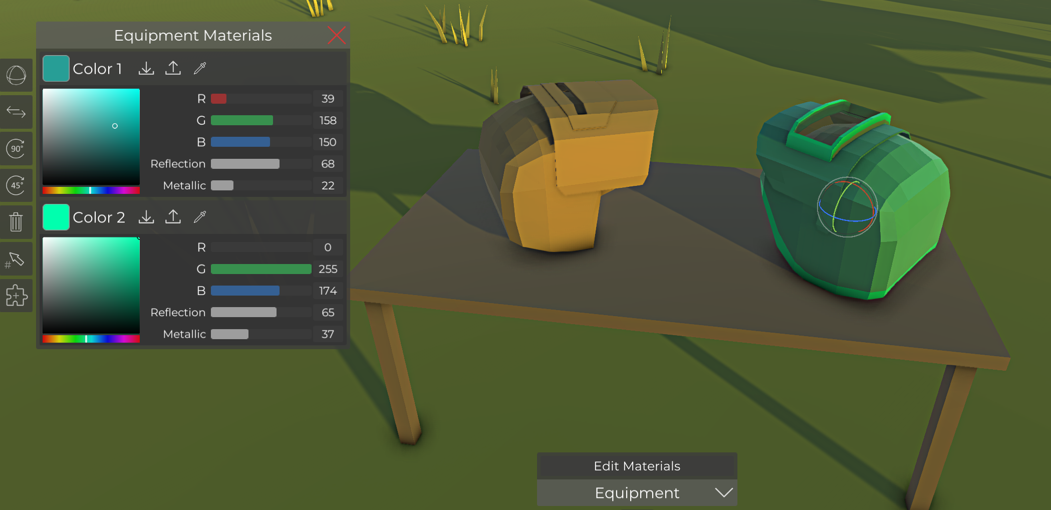 The materials of placed equipment items can now be adjusted in the battle editor.