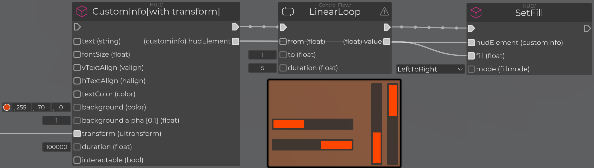 Instead of having to create an input node for each input value of a node, most types can now be input with a single click next to the input port. Node connections will clear existing quick inputs. Supported input types are types like bool, int, float, string, float3, color, references and enums.