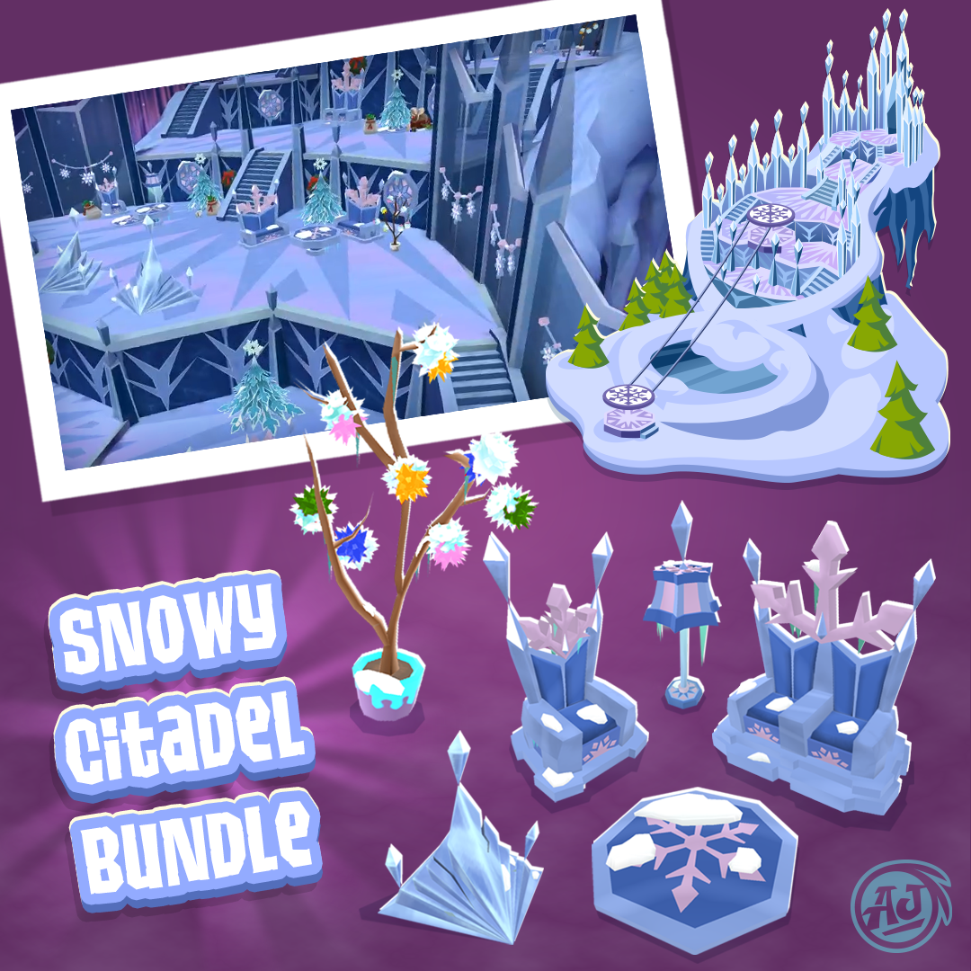 The Snowy Citadel Den has arrived in Play Wild and is now available in the Sapphire Shop! The Snowy Citadel Bundle is a great start on decorating your new Citadel with a wintry theme!