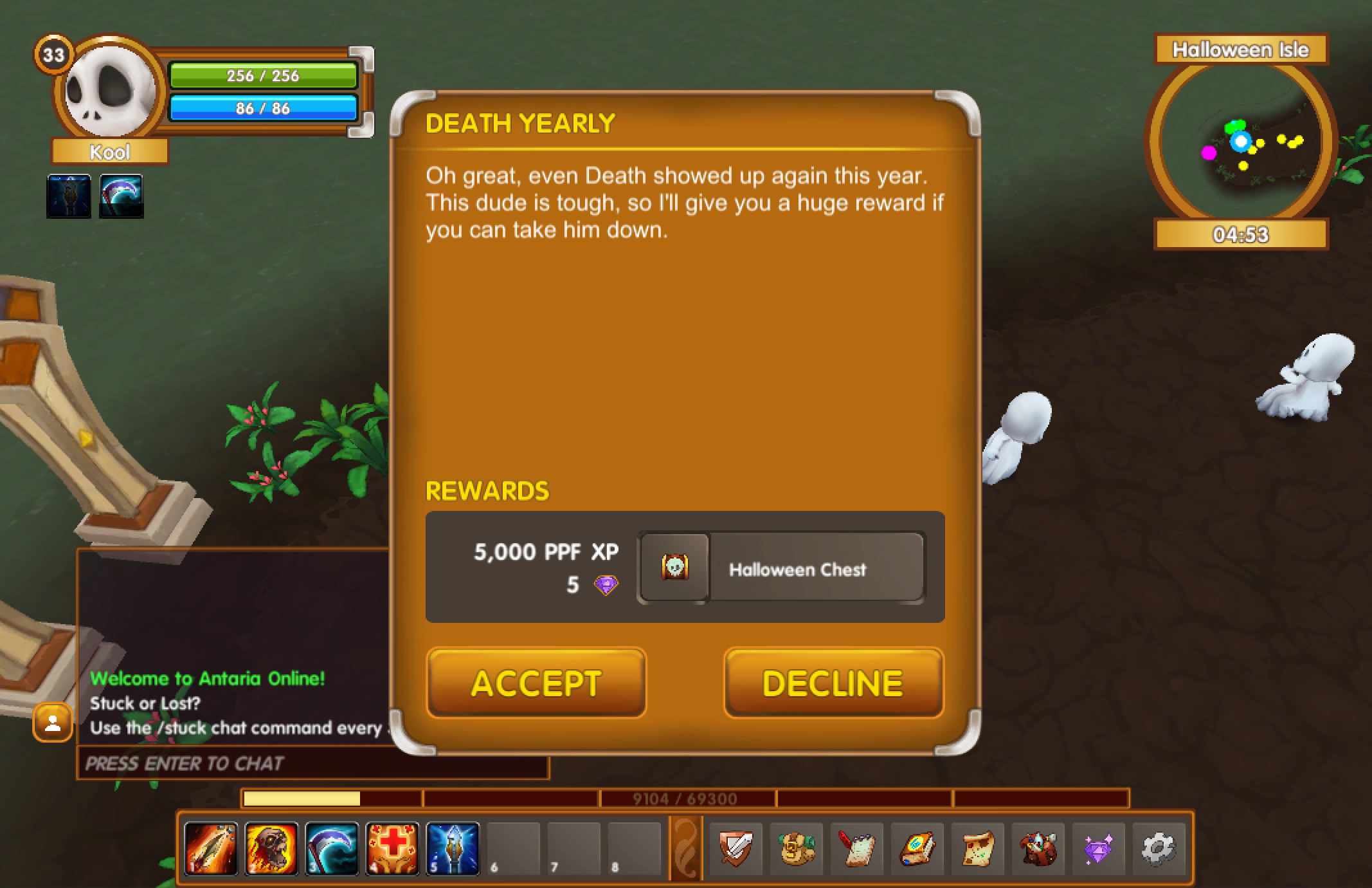 * Added Death Yearly Quest - 5 Gem Reward + Halloween Chest