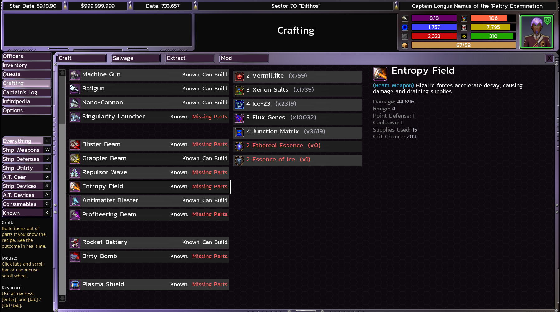This solves a long-time problem the game's crafting system had: a knife was just as difficult to build as a warp drive. Not anymore!