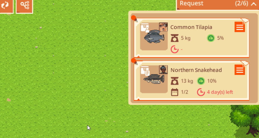Contract Order Request has more or less the same objectives as Urgent Order Request, which is to deliver a number of fish in accordance with requests from the customer. The difference is Contract Order Request requires you to deliver a number of fish to the customer for a certain period of time.