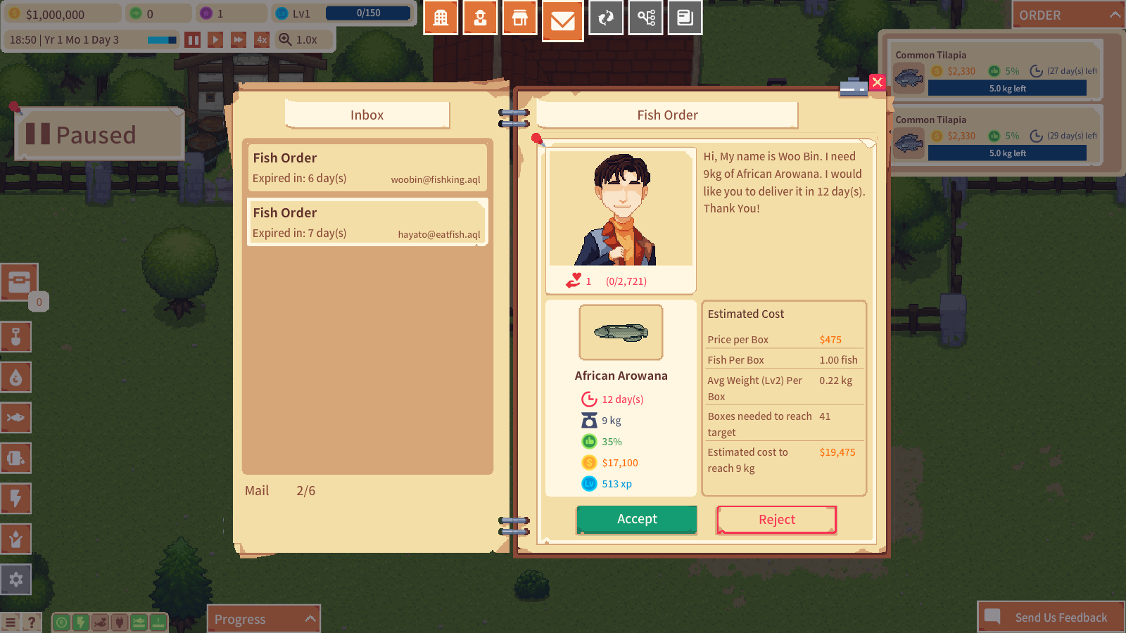 In this Career Mode, you will be presented with stories about your journey in building an aquaculture business and how you build relationships with your customers. You need to make your relationship with your customers closer if you want to grow your business.