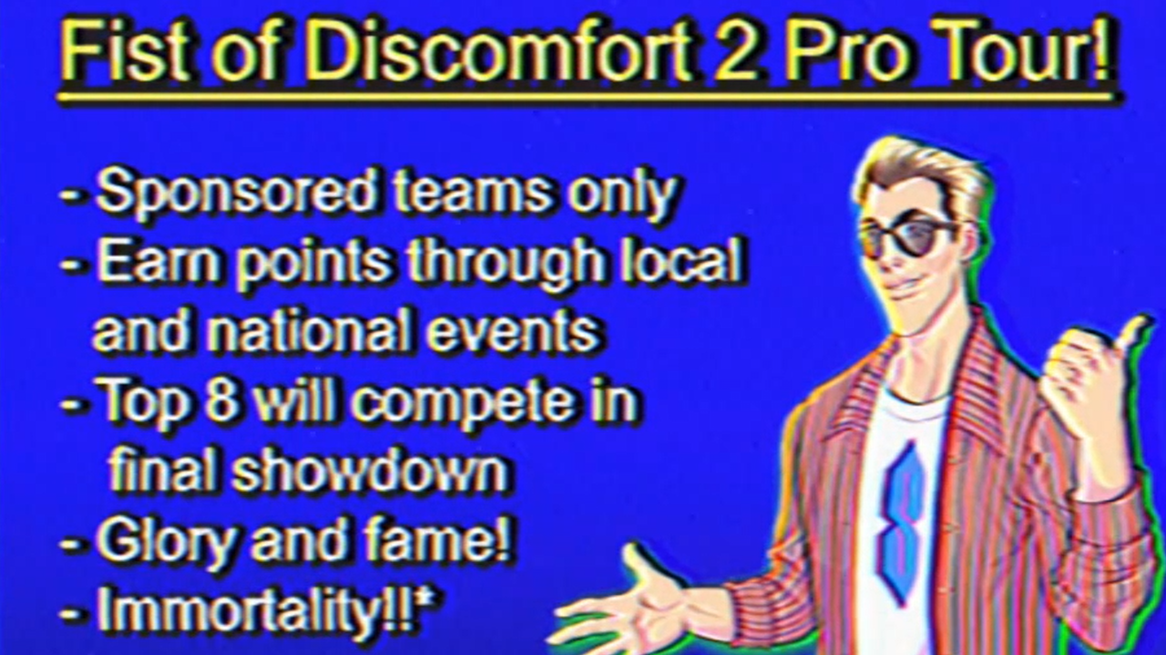 Originally conceived by designer Jason Takeshi as a fun side project to combat the monotony of his day job, Fist of Discomfort rapidly gained a huge following of devoted fans. Now the game's sequel is lighting up the world of competitive esports, with challengers from all corners of the globe battling it out to be crowned champion. Entire gaming careers are being made and shattered in the name of Fist of Discomfort!