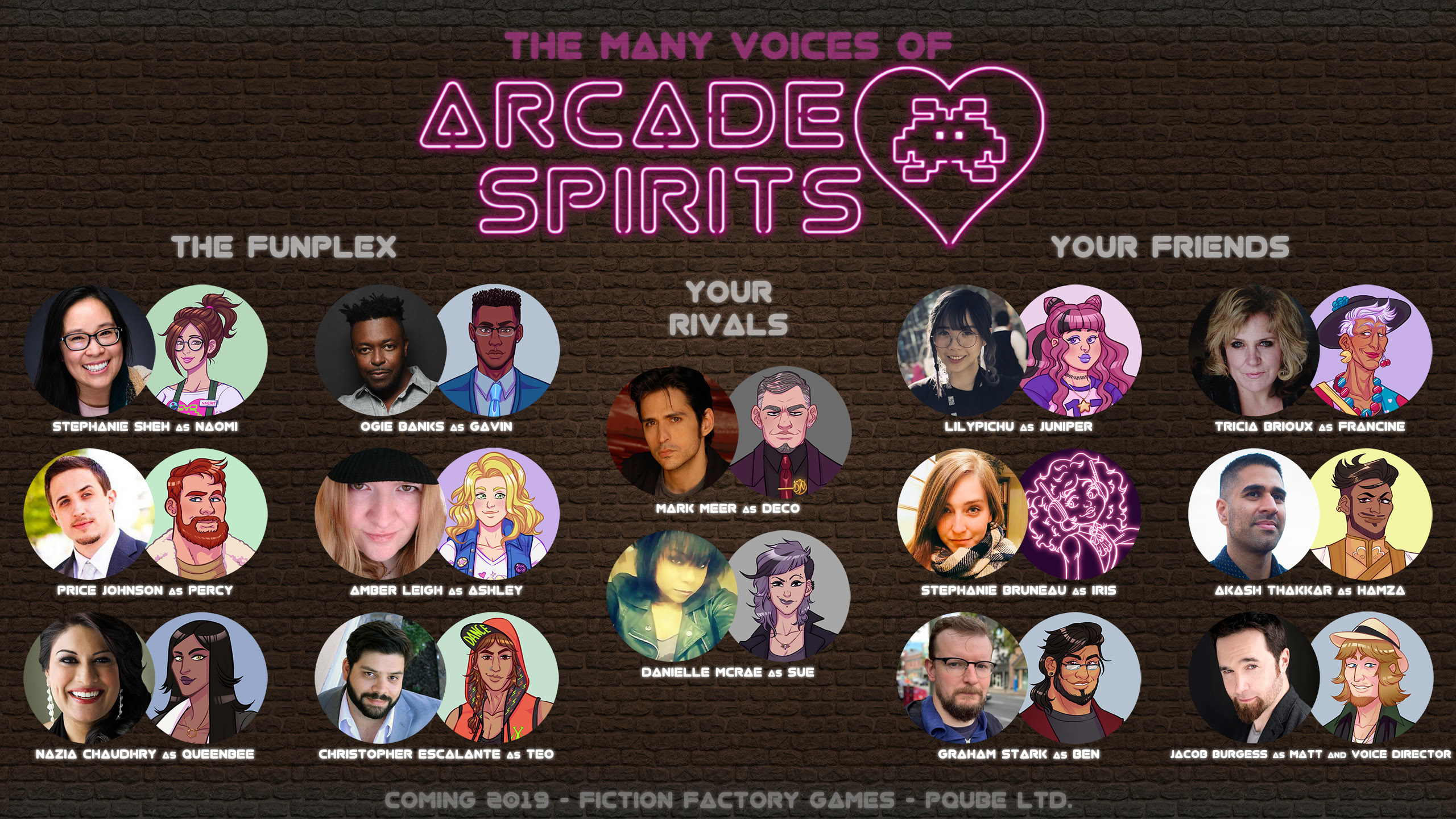 Here's a conveniently desktop wallpaper sized poster of all the voice talent behind Arcade Spirits! Click to embiggen, share and enjoy.