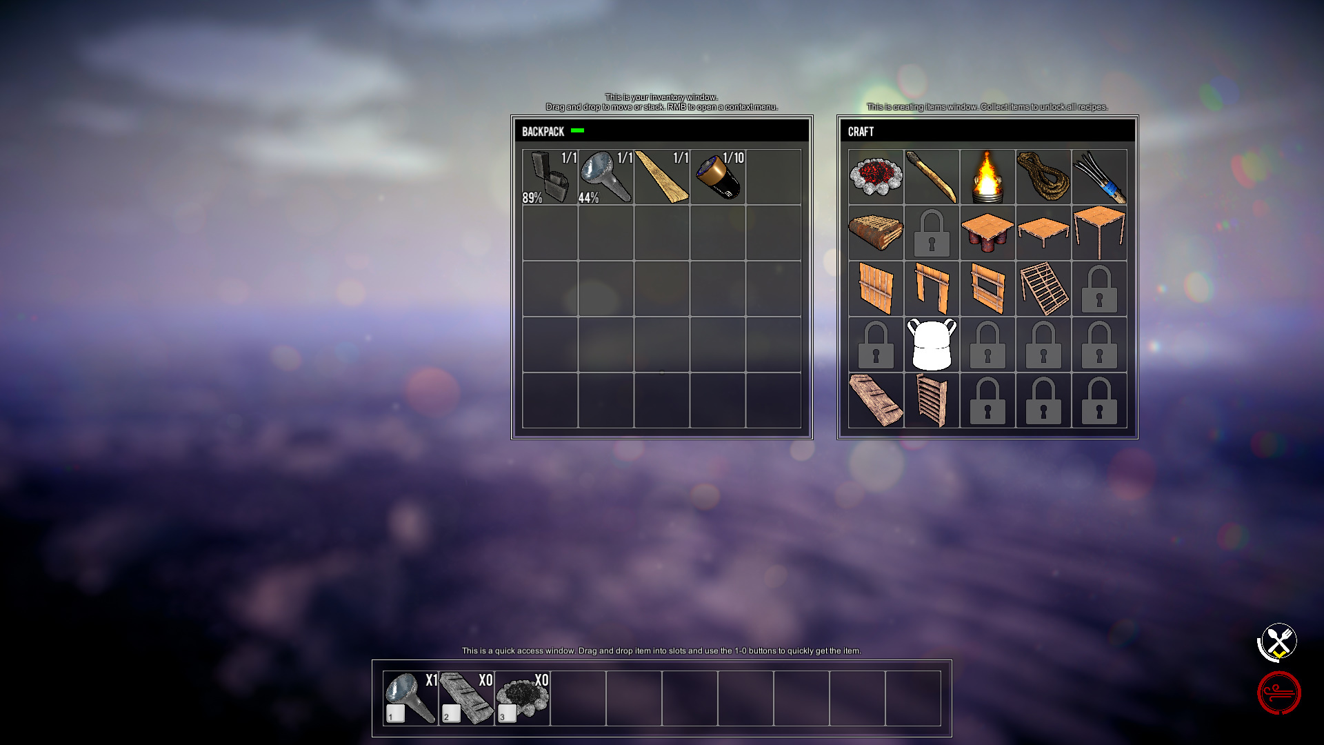 Added a basic Construction System. The rest of the Construction elements will be added later. Added Foundation recipe. The basis for building. Added Water Platform recipe. The basis for building on the water. Added Wireframe recipe. For wall placing. Protects rain. Added Ladder recipe. Allows you to climb to the next floor. Added Wall recipe. Protects from the wind. Added Door recipe. Protects from the wind. Added Window recipe. Protects from the wind. Added Shelving recipe. Save container (25 slots).