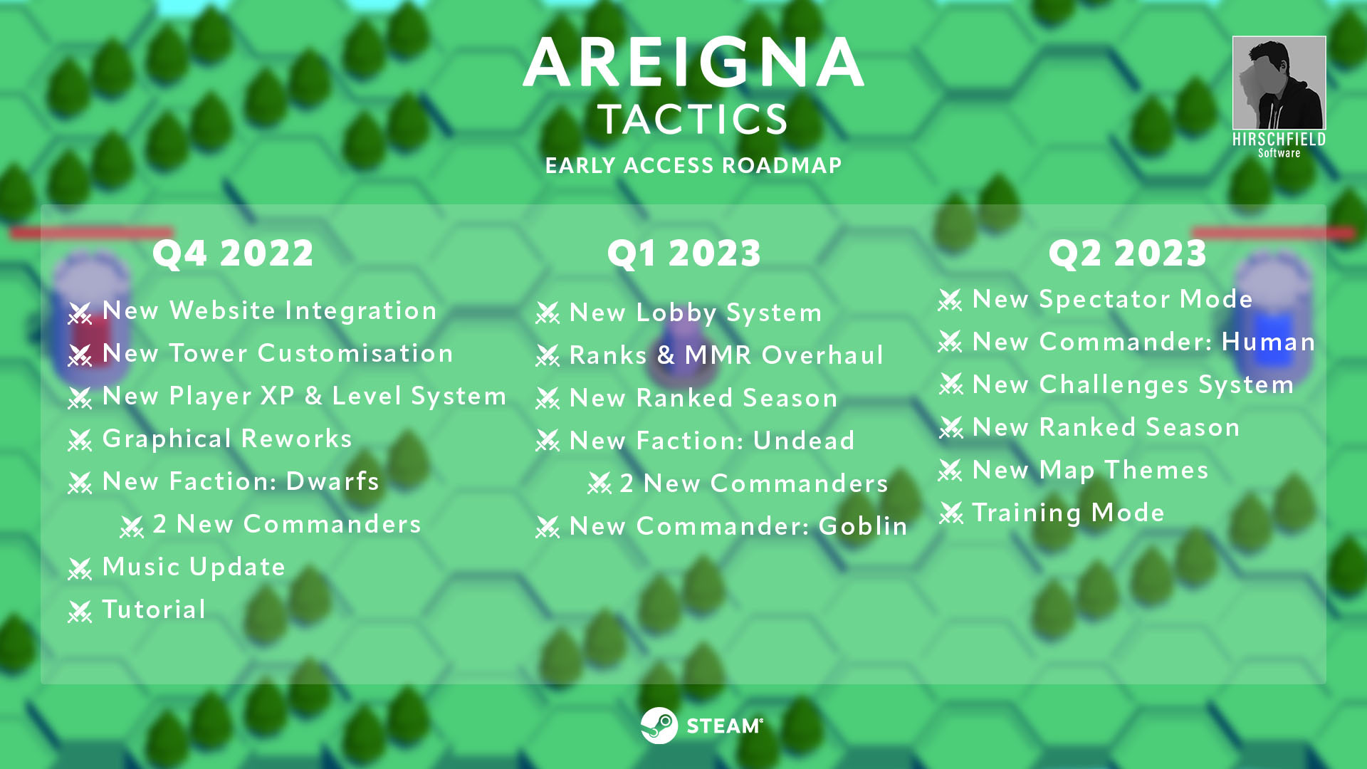 Areigna Tactics was created due to my love of creating games for friends, and to build something that once again proves everyone is better at playing competitive games than me... Both of these objectives have certainly been met above and beyond my initial expectations. We have so many ideas and changes that we will be making to the game over this next stage in Early Access and we can't wait to play with you again. Check out our roadmap below before you go.