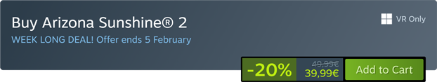 Brace yourself for an adrenaline-fueled adventure because we grabbed our machete and sliced our prices up to -25% off! Enjoy the first discount on Arizona Sunshine 2 and dive in this gore-geous experience. But act fast because this discount won't linger in the world of the living forever.