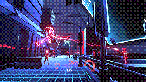 For those of you who dont’t know, and are new visitors, ARK-ADE is an action-packed FPS shooter that pulls you (literally) inside an arcade cabinet, where you get to fight bad guys and giant bosses in a neon, retro-futuristic setting reminiscent of the glorious 80’s. It’s easy to get into, but as the saying goes, difficult to master. If you simply want to do some virtual run and gunning, it’s perfect. For those of you who like a real challenge, our Expert mode and leaderboards await!