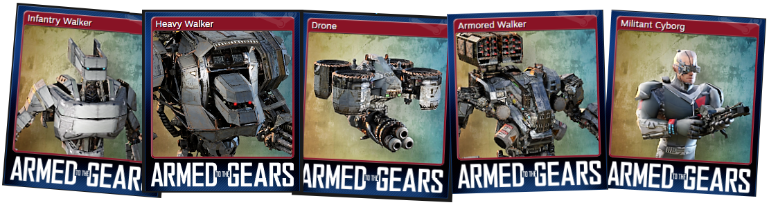 By trading with other users to collect the whole set of five cards, you can then unlock unique Armed to the Gears badges, emoticons, and profile backgrounds to enhance and level up your Steam Community profile.