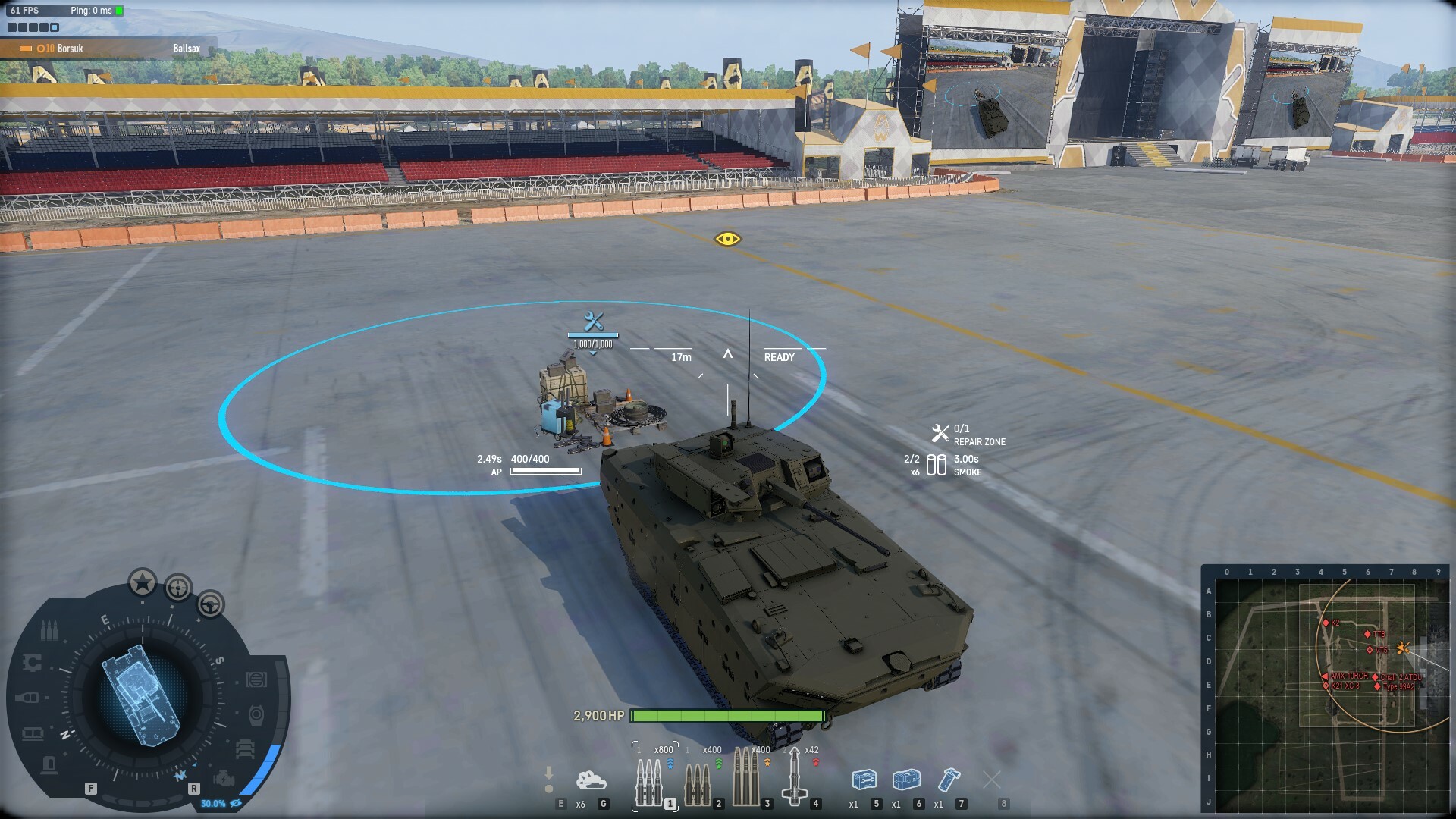 Secondly there’s the Borsuk. The biggest question about this vehicle was its ability’s rate of repair. The current setting is 30 hitpoints per second.
