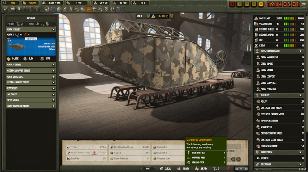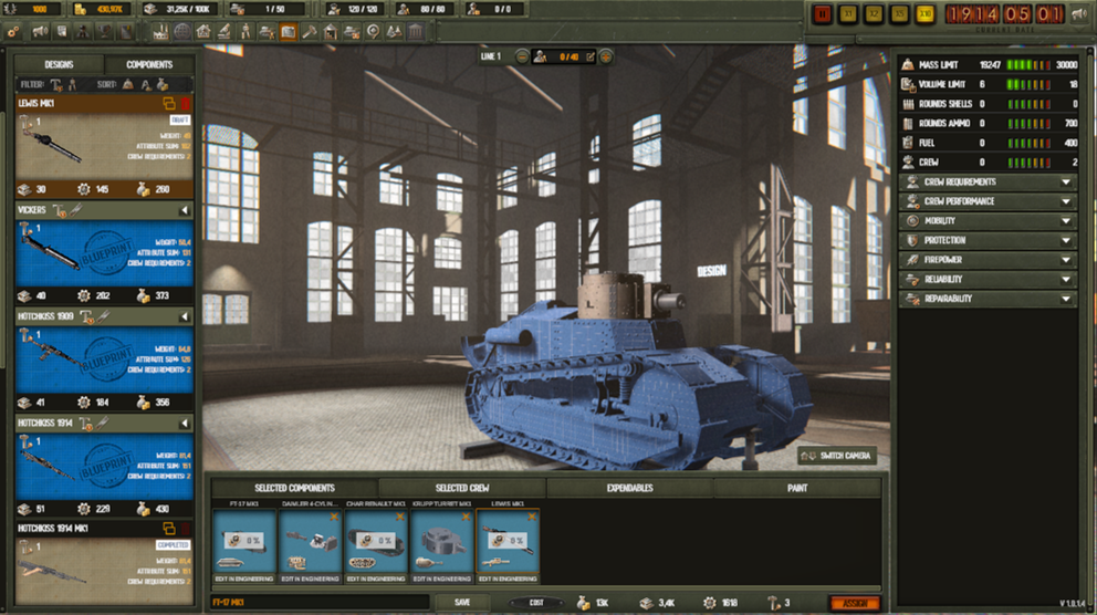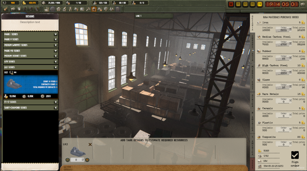 We are thrilled to announce that the game is gradually approaching its Alpha stage. There you’ll be able to test most of the game mechanics including Research, Contract Management, Military Campaigns and Battles. More tanks will join the portfolio including French FT-17, Saint Chamond and maybe more!