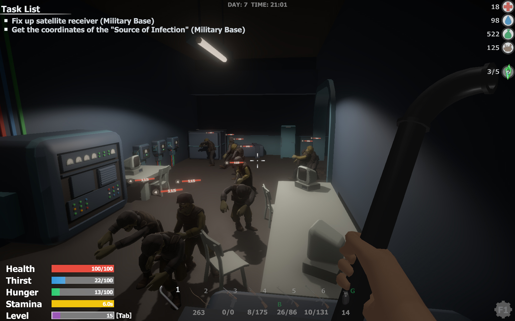 ⦁ In a random area from midnight to 6 am there will be a maximum of infected. Keep this in mind if you need experience or resources.