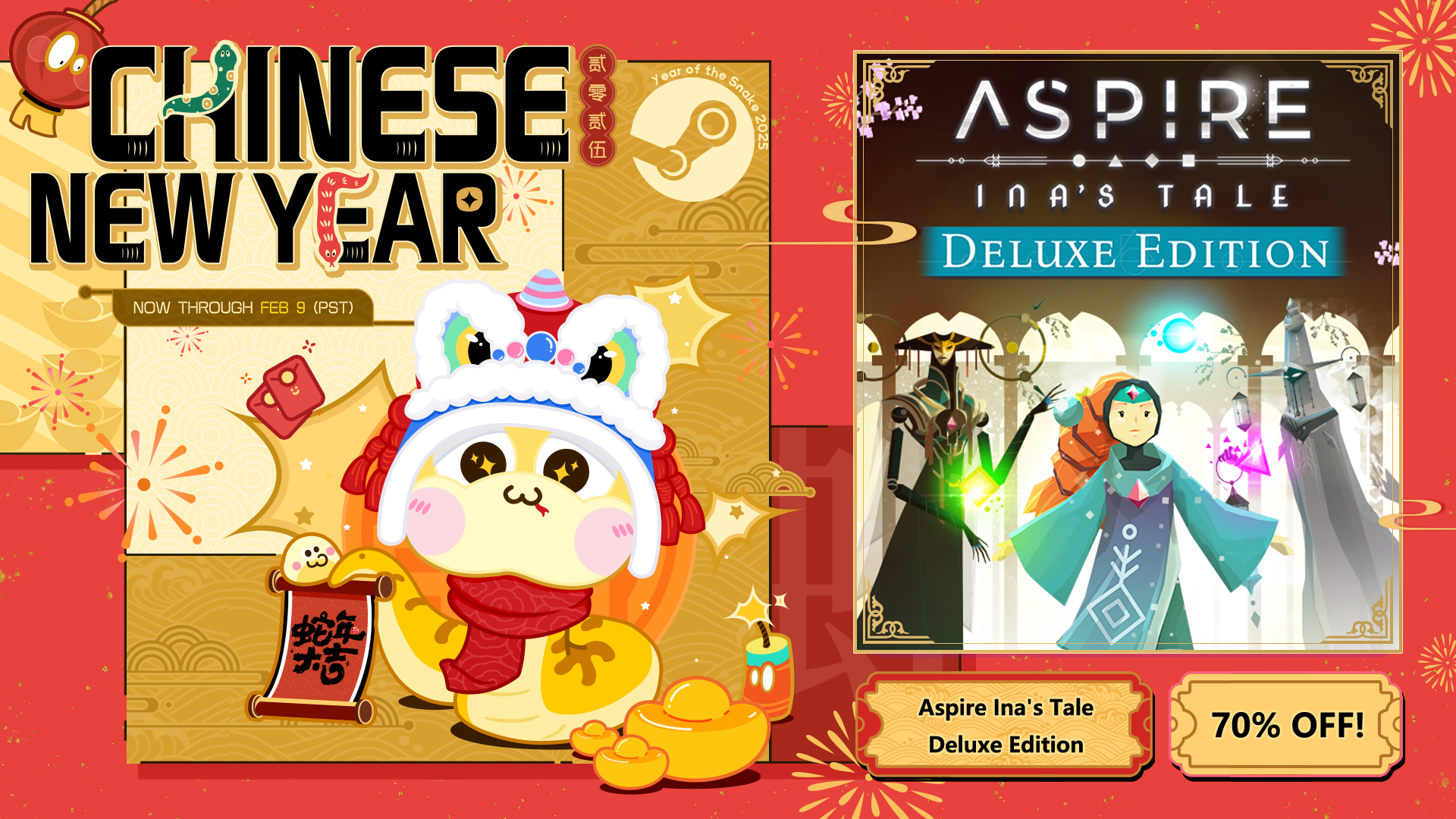 To enhance the celebrations, weโve made sure that not only can you acquire a lot of our games at great prices, but they also come in their most shiny, opulent, versions. One of those firecrackers of a deal is Aspire Ina's Tale Deluxe Edition, and from January 26th to February 9th, you can get it at a jaw-dropping discount as part of the Chinese New Year Sale 2025. ๐