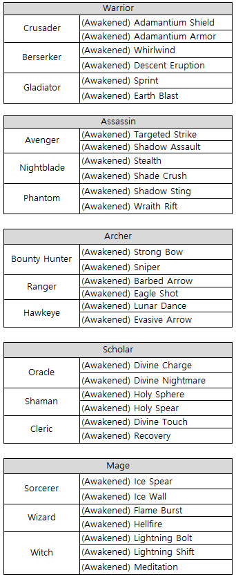 Each class will get 2 new awakened skills when transforming to an advanced class.