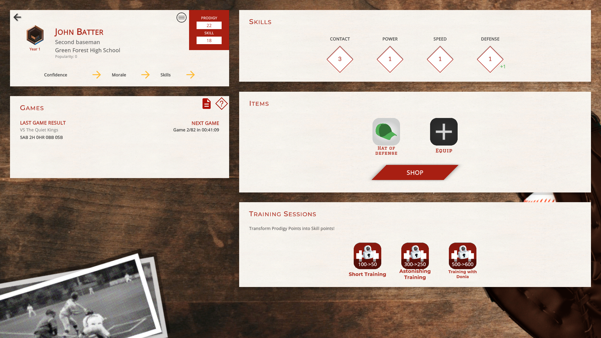 This week we bring you a big update, with not one but two major features! The first one is "The Prodigy". In this mini-mode, you will take care of a future prospect, going from high school all the way to your graduation! Not only you have to take care of upgrading their stats, but also take very important decisions: do you train or study? Do you go to a college in Seattle or Paris? Do you play baseball or go out with your teammates? And most importantly, should you go to the Halloween party with your best friend or the girl of your dreams? There's no wrong answer (or so they say).