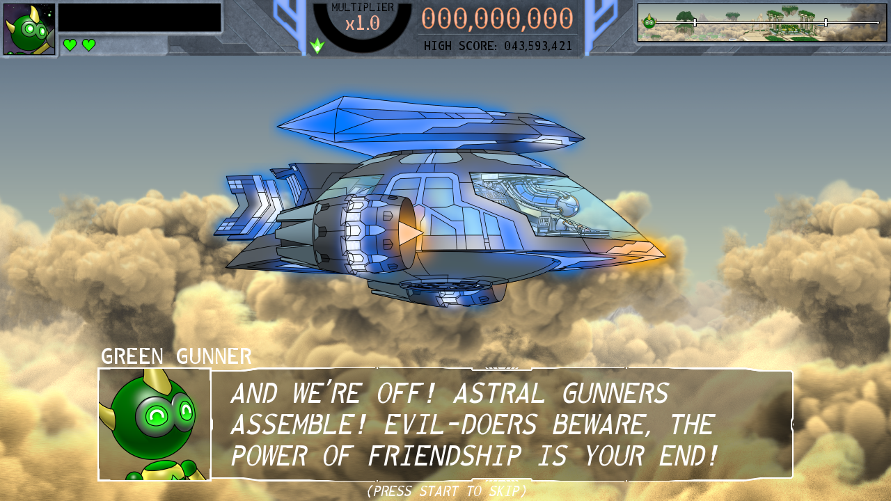 We get it, we all have busy lives. Sometimes it's nice to be able to stop a game and come back to it later. Astral Gunners now features a quick save option that you can select from the level select screen. CAUTION: Using this will disable online leaderboards for that run!