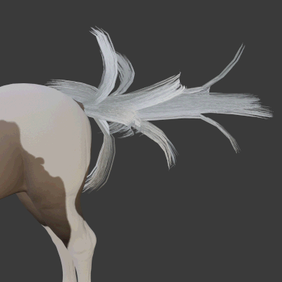 In the weeks before the coat randomizer test was launched, we wanted to give a more lively look to our horses. And the most visible missing part to our horses is the tail. The last version with movement was... unruly, so we wanted a system that gave more us control. In the meantime we have used a static tail that follows the tail root, which admittedly looks a bit silly.