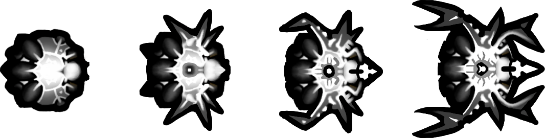EVOLVING ENEMIES! Enemies will not simply be recolored upon assuming a new difficulty level- they'll evolve! Every single enemy has 4 levels of evolution that replace their higher difficulty versions! Some even have complex animations like writhing tentacles and biting jaws!