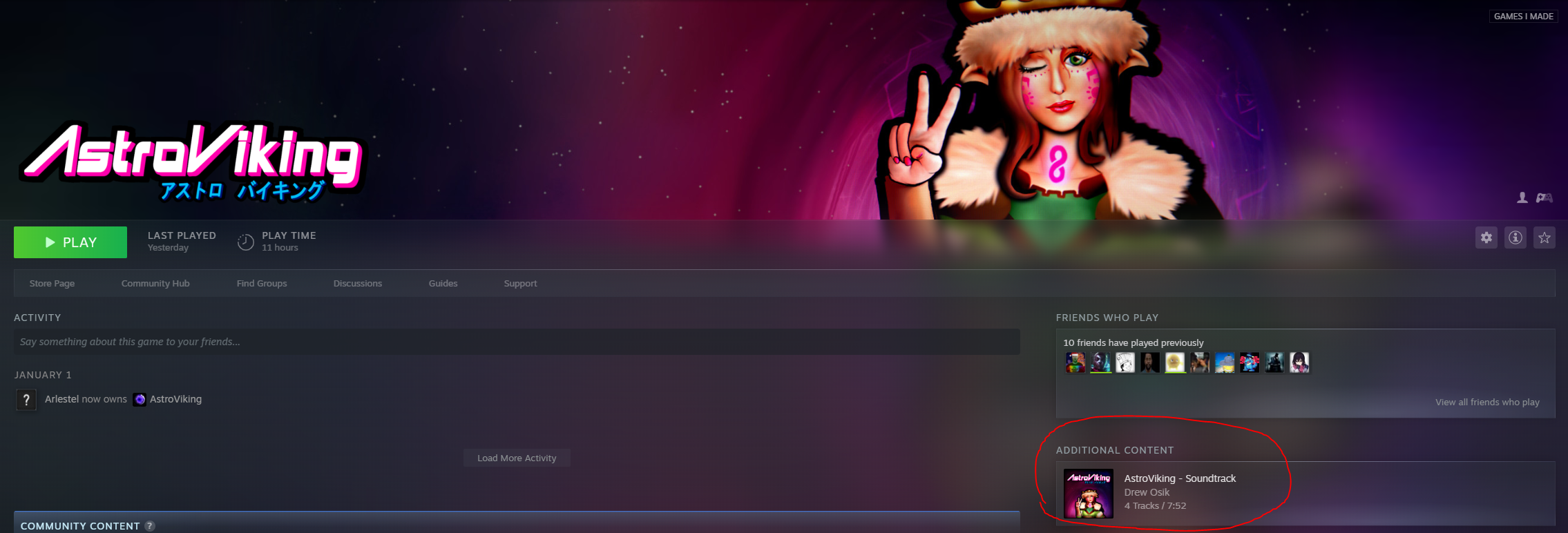 Hello! We've just updated the soundtrack for AstroViking to utilize Steam's new audio player feature. You can now play the audio from the soundtrack directly in your Steam library, and can easily be taken to the directory where the soundtrack was downloaded. This is a pretty big improvement to how Steam handles soundtracks, so we thought we would implement it for those that bought it.