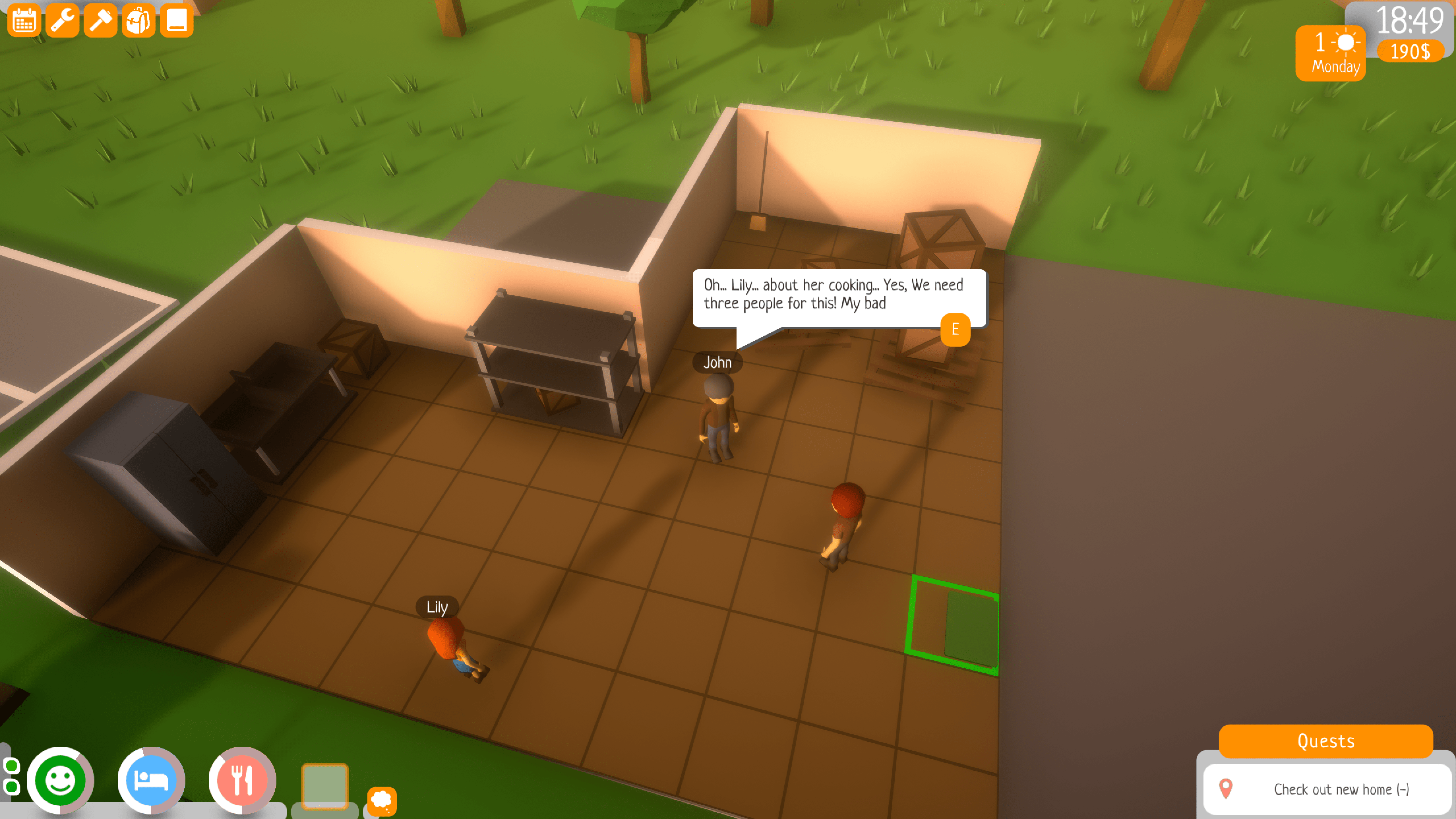 List of unfinished things that need to be on the release, and I've been working recently on them: -Customer behaviour and shop development -Finishing the system of needs -Fishing system -Relationships system