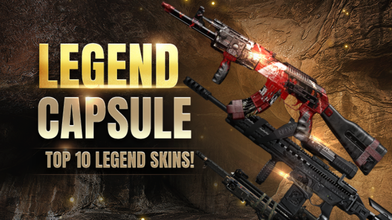 Please note that: The Legend TOP 10 Capsule Capsule features a collection of Proto Chaos, KCR XX, Z3A3 Shootfrog, Almond-65 Africa King, X95R Lycanthrope, MA-47 Cursed Voidman, Cannon Jager Meissner, 870 Blue Spots, Zeck Bren Chrome, X16 VN Poison Dart weapon skins. The Legend King Capsule contains Premium, Regular tier weapon skins. When purchasing 10 times, you'll receive one more capsule ticket as a bonus.