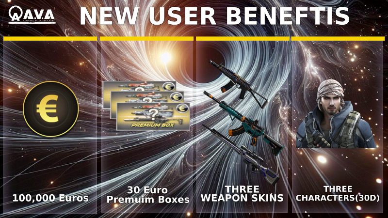 New User Bonuses: 1. A generous 100,000 Euros to kickstart your journey 2. 30 Euro Premium Boxes for a touch of luxury 3. Three exclusive weapon skins to enhance your arsenal 4. Access to three unique characters for a duration of 30 days
