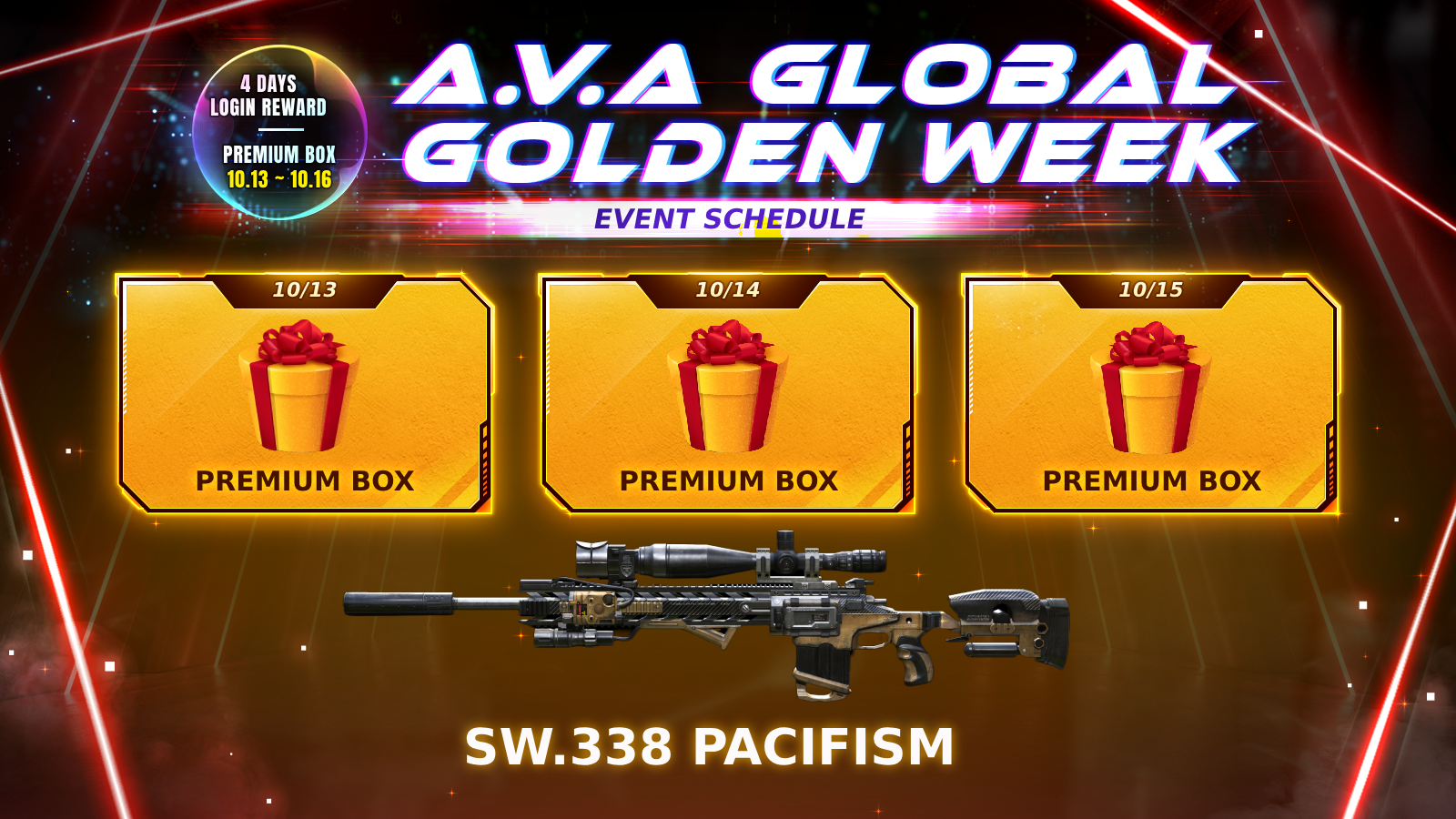 If you successfully log in to A.V.A Global for 4 consecutive days, you will receive a bonus reward - a Premium Box for each day.