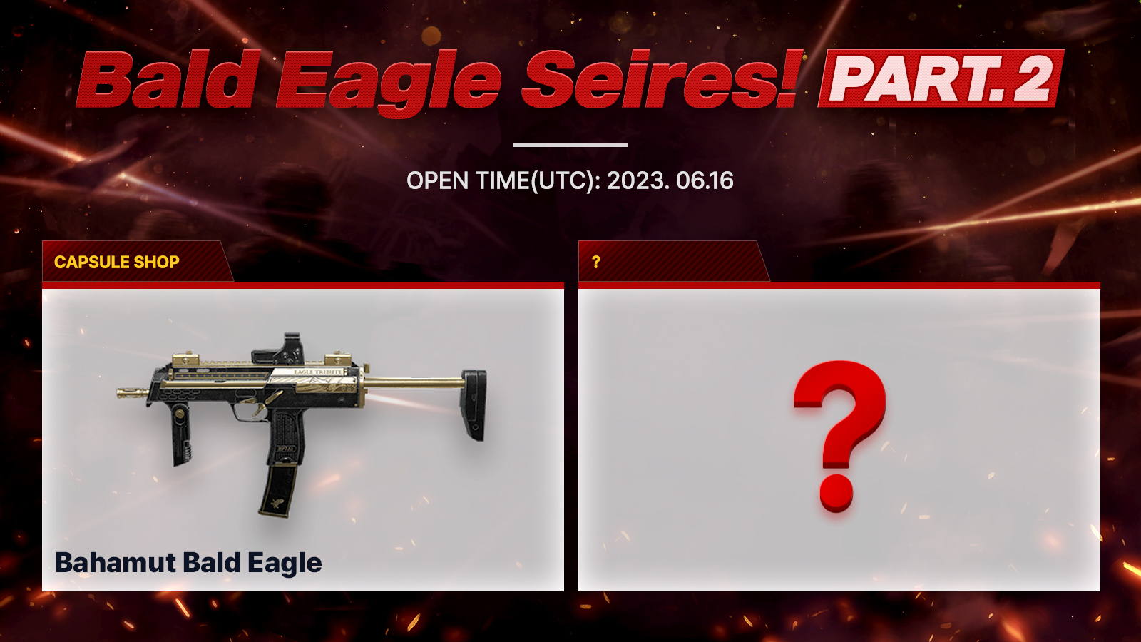 [Opening Schedule] > Time (UTC): 2023. 06. 14, 07:00 AM ~ 2023. 06. 15, 07:00 AM * Please note that the schedule may be subject to change due to internal reasons * After [WCX-SBR Maxtech] closed, [Proto Bald Eagle] will come back to Rifleman Capsule