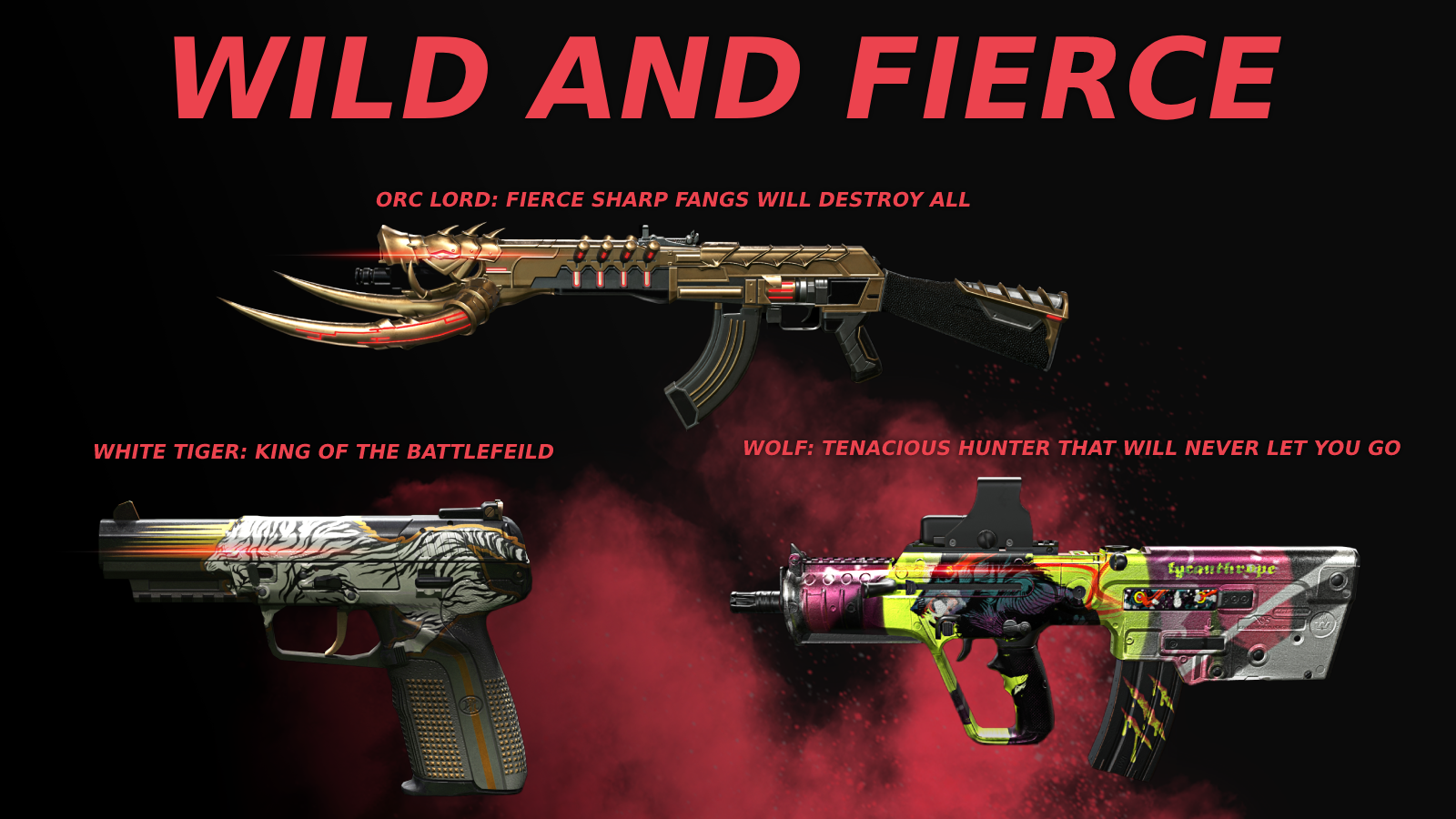 Introducing the newest skin to our A.V.A Global: the Wild and Fierce skin! This skin is not for the faint of heart. Transform your gameplay with the primal power of a deadly predator with fierce, sharp fangs that will strike fear into your enemies.