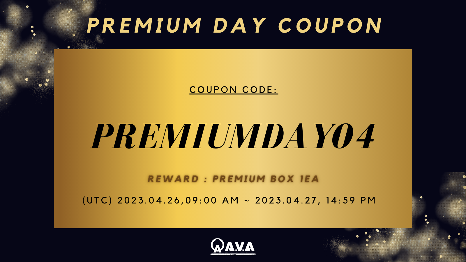 A.V.A Global Golden Week Surprise Coupon is available in the below schedule! Click the coupon icon on the top right of the game lobby and type: