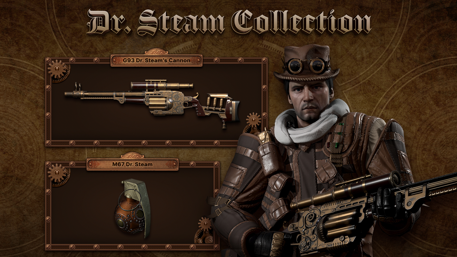Introducing the Dr. Steam Final Collection Capsules, featuring exclusive skins such as the [Dr. Priest Steam], [G93 Dr. Steam's Cannon], and [M67 Dr. Steam].