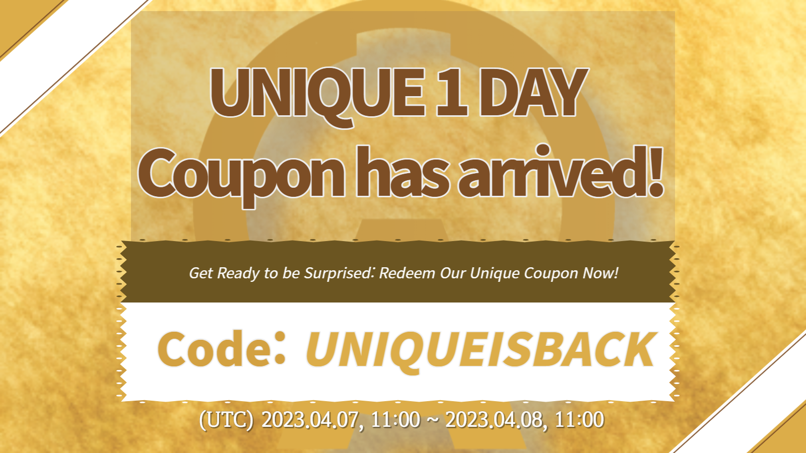 [The coupon can be redeemed during this schedule] > Time (UTC) 2023. 04. 03, 12:00 pm ~ 2023. 04. 04, 12:00 pm