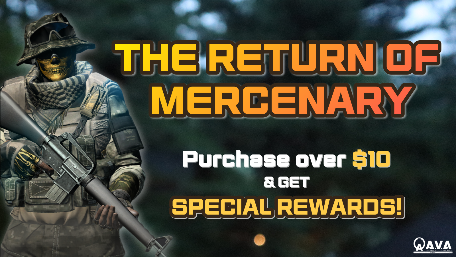 If you are a new mercenary, or a mercenary returning after Jan 17, you will get a special gift by logging into A.V.A Global from Feb 18 ~ to Feb 19 (UTC)!