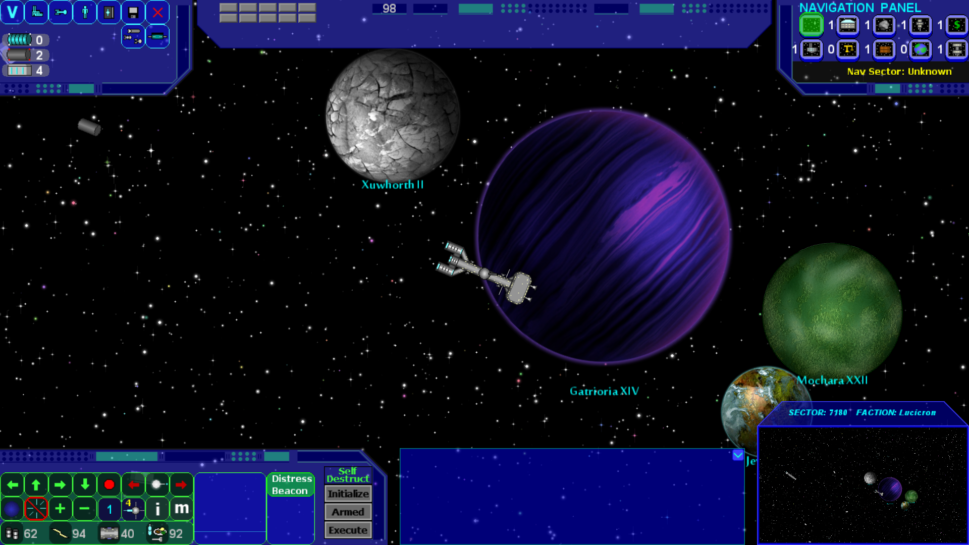 - New save game slot system for saving multiple journeys - New tutorial tips which can be turned on or off via tutorials in main menu - New non-combat ship class, Food Transports which can provide food and are owned by Nomad, Malcos, and Necromancer - Added two types of tankers for Necromancers faction - New Malcos Kraken class battleship, equipped with 4x med lasers and a fighter squadron so be careful around these! - The ship role for Agricultural class ships are no longer listed as food transport and are now as food supply - Giving gc or requesting cease fire on ship comms now shows the proper tokens received - Pressing P when on planet surface now pings the shuttle location - Increased amount of white starts over colored stars for slight more realism - Some minor graphic enhancements