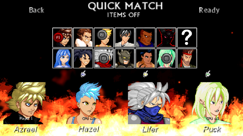 It's still a work in progress and I will keep updating it, but for the most part everything works just fine. You will notice Azrael is now blonde, this will mark the final phase of the game. I'm going over each and every single sprite and cleaning everything up and making it look better. More polish, more animations, and so on. You'll notice Shen has already received this type of treatment. His animations look a lot smoother and they have been touched up quite a bit. Soon I will do this to every single fighter in the game.