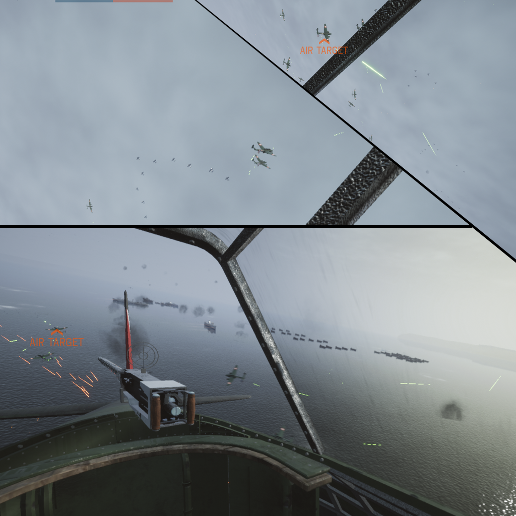 The B-17 is available on the North Atlantic map, where the mode is designed exclusively to shoot opponents without maneuvering (more intensive mode with constantly coming enemies and air respawns, as originally planned. The main opponents are already existing French planes, as well as Fw-190).