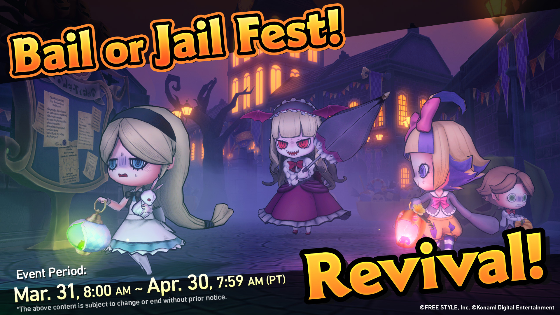【Event Period】 Mon. Mar. 31, 2025, at 8:00 AM - Wed. Apr. 30, 2025, at 7:59 AM (PT) Enjoy Bail or Jail on the fest-limited maps!