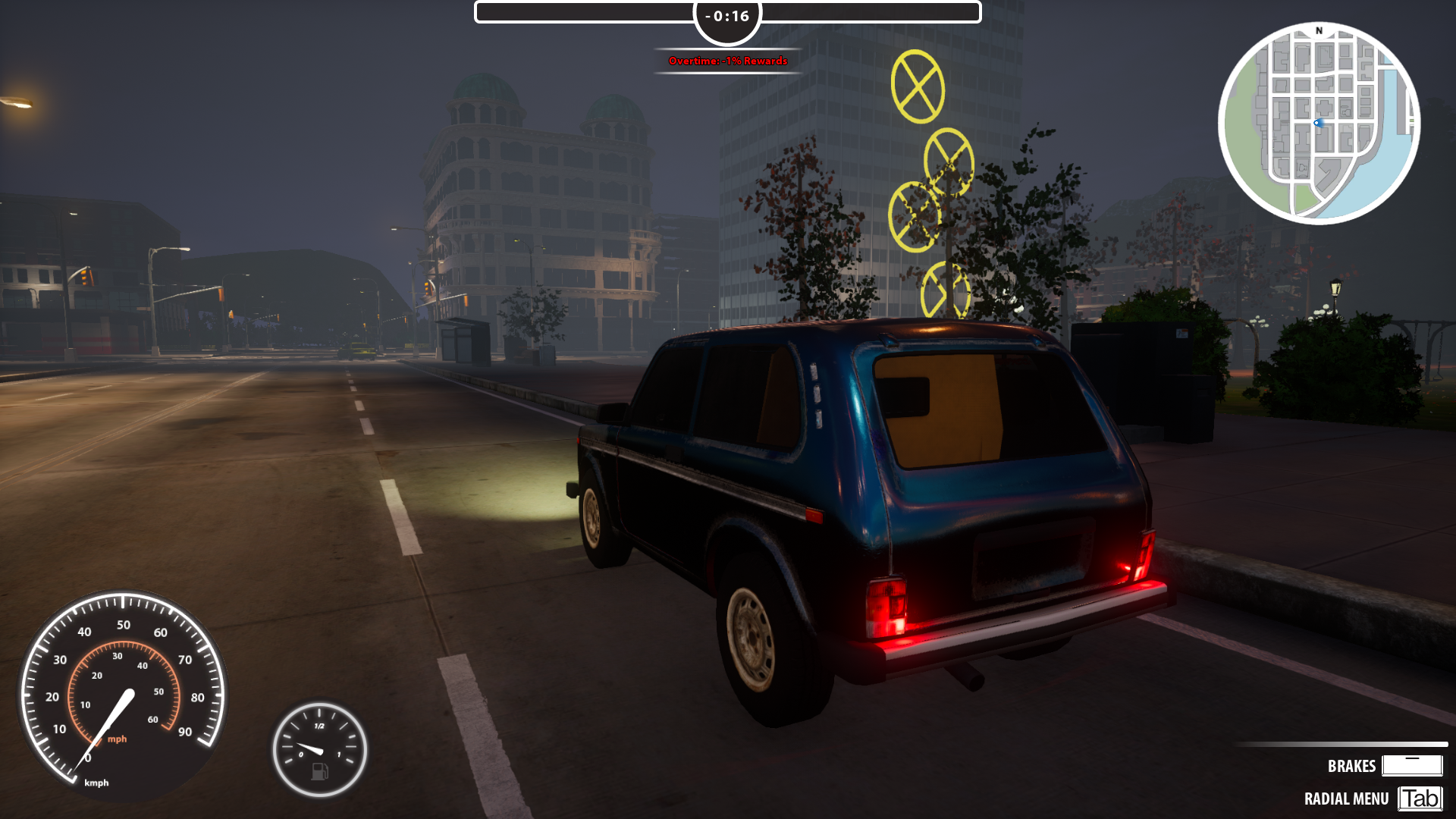 Sometimes unexpected can happen and then it's good to be aware of the options you have. While driving around the city you'll be able to access the radial menu by pressing "TAB". The menu will contain some options that you can use when you're driving around the city.