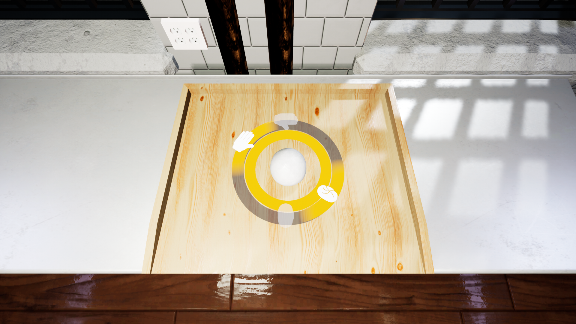 Baking itself is also prone to making mistakes. In one of the previous devlogs we've talked about making the big ones - like setting your own creations on fire. In order to avoid that it's good to check periodically on things you've put in the oven. Right now, visible on the screenshot above, tooltip let us know that you should still keep your bun in the oven for a bit longer. However if you forget about it and put it there for too long you risk it getting burnt...