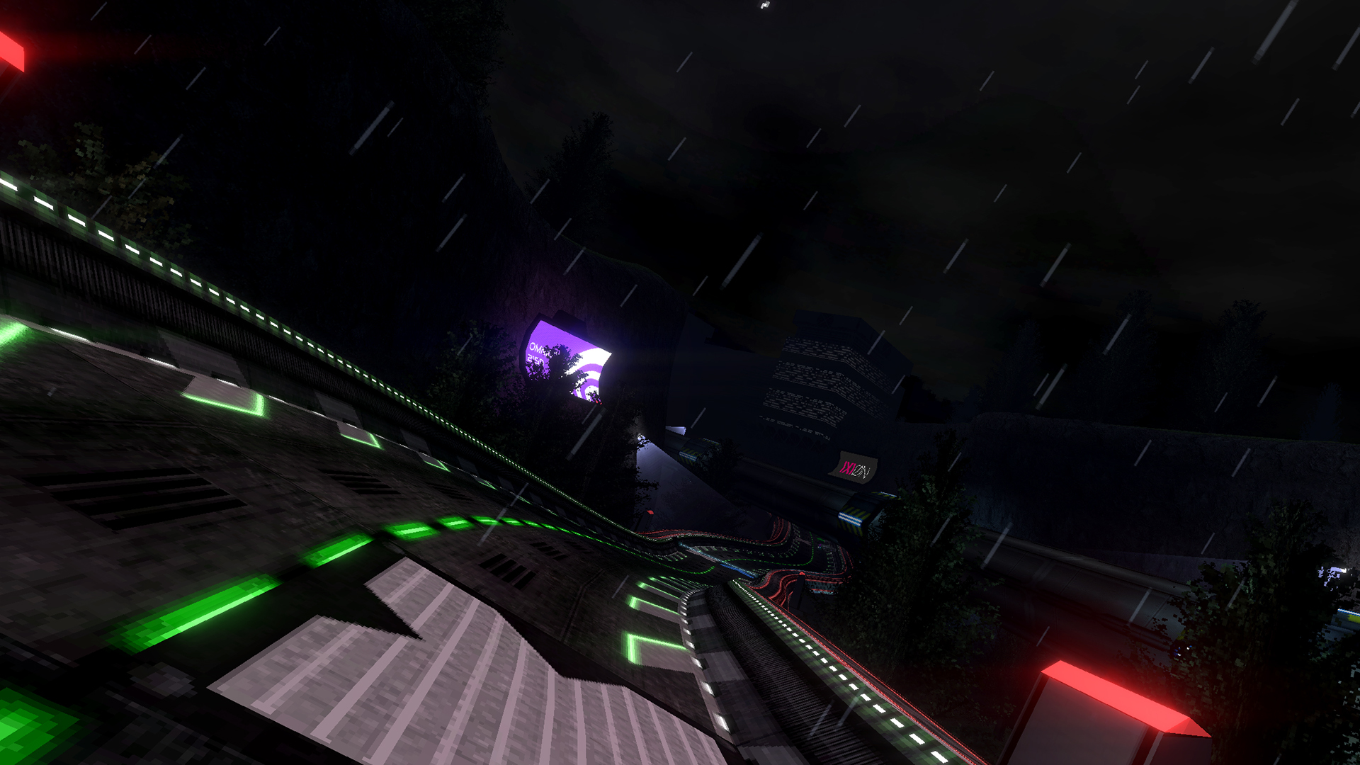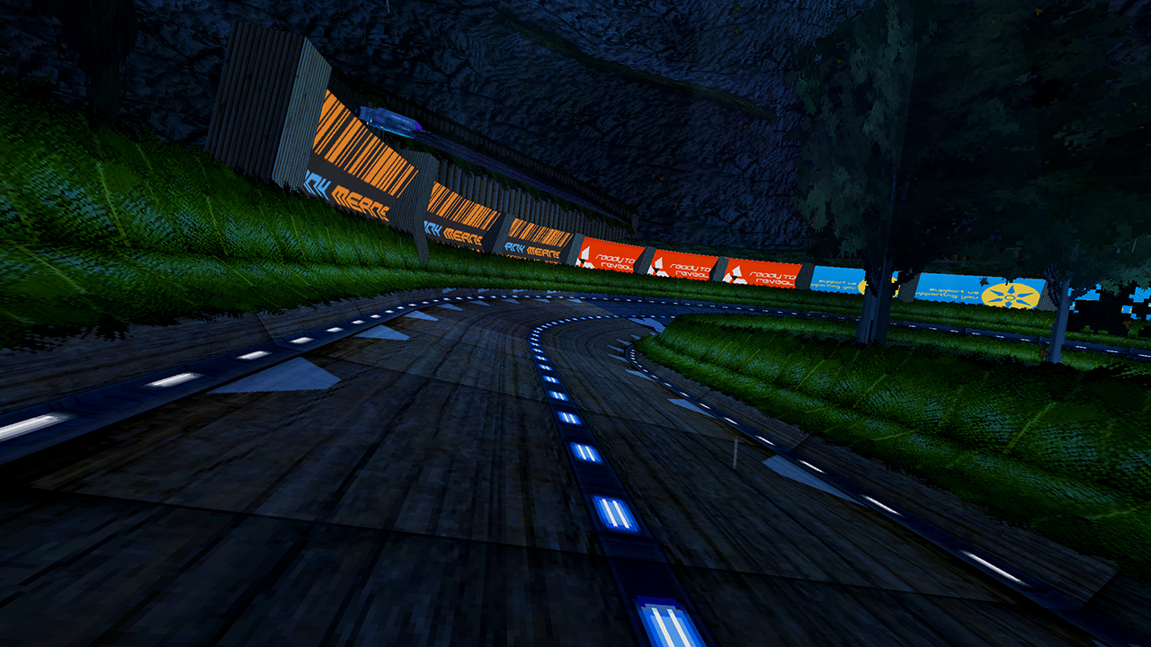 Advertisement display boards are now replaced with music visualizers in Survival mode! Like the track visualizer these also respond to custom music. For track creators, everything you need to get these setup will be available in the release version of the unity tools.