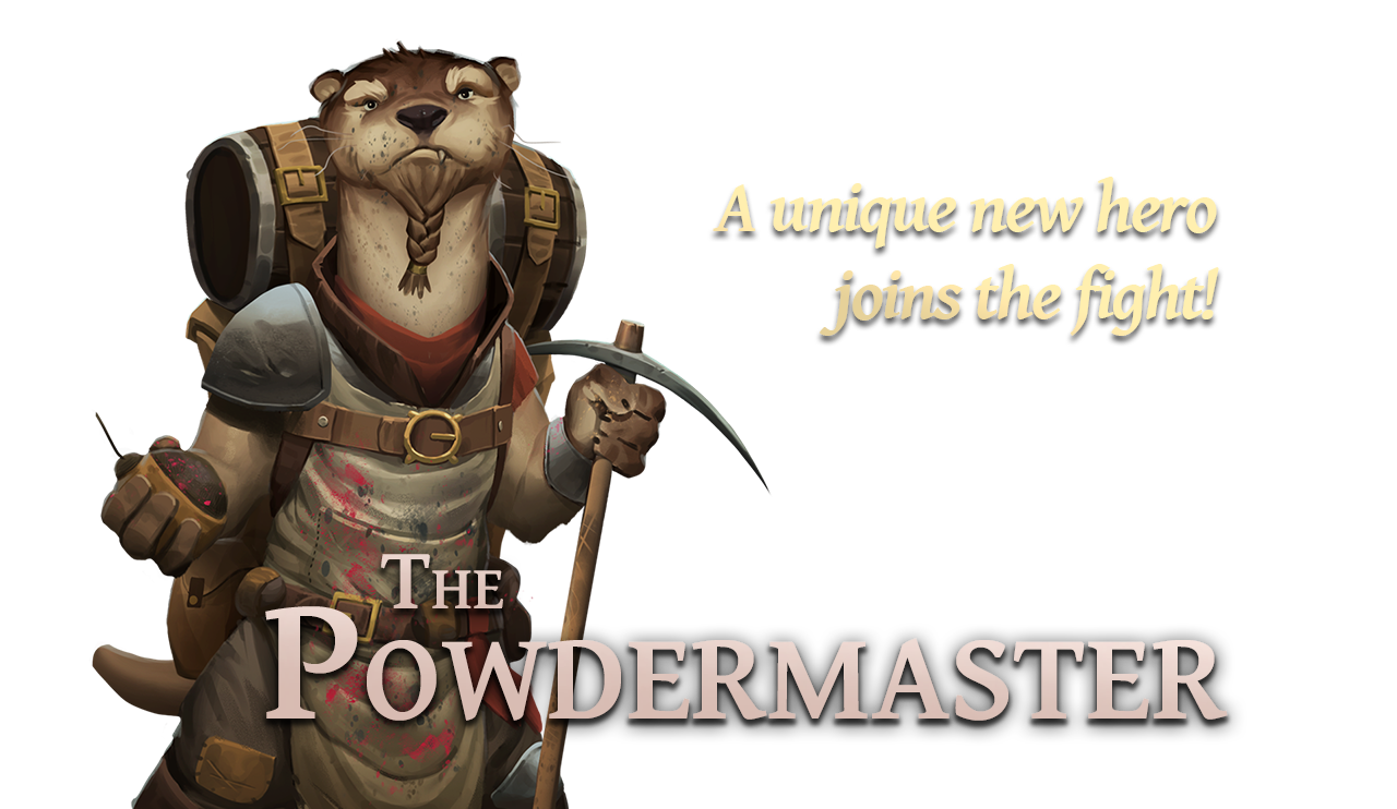 The Powdermaster has a unique hero ability; mixing powder cards. When you have powder cards in your hand (Red, Pink, Yellow or Black), you can discard them to gain stacks of 'Boom' - a new status effect specific to the Powdermaster! Pro tip: you'll gain more Boom for discarding powders of more than one colour.