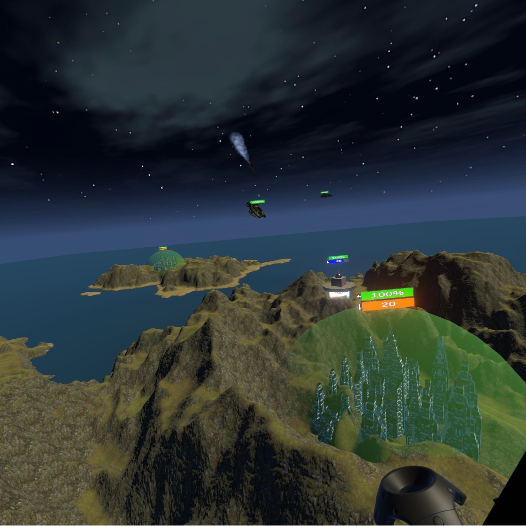 Sorry it has been so long since we have talked but we were adding a lot of features to Banshee Force. Today's update is packed with exciting new features and is bringing many new systems to the game. One of the biggest changes of the game is the inclusion of multi-island defending. With Multi-island defending you have to move between multiple cities and work to keep them all alive. To make this easier we have added to the game the ability to teleport with the right hand touchpad/stick.