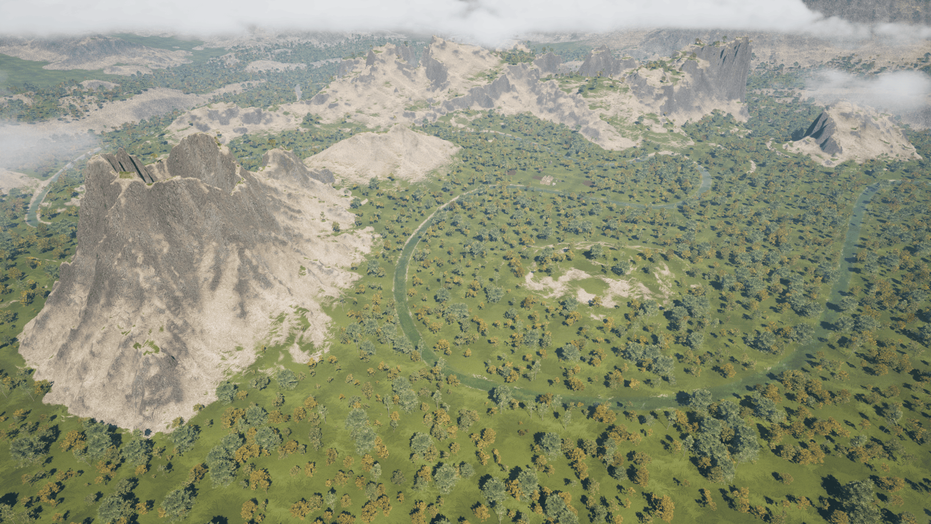 This procedural system provides a lot of future benefits such as natural material blending, tesselation and a new way of spawning rivers, paths, fields and huge worlds.