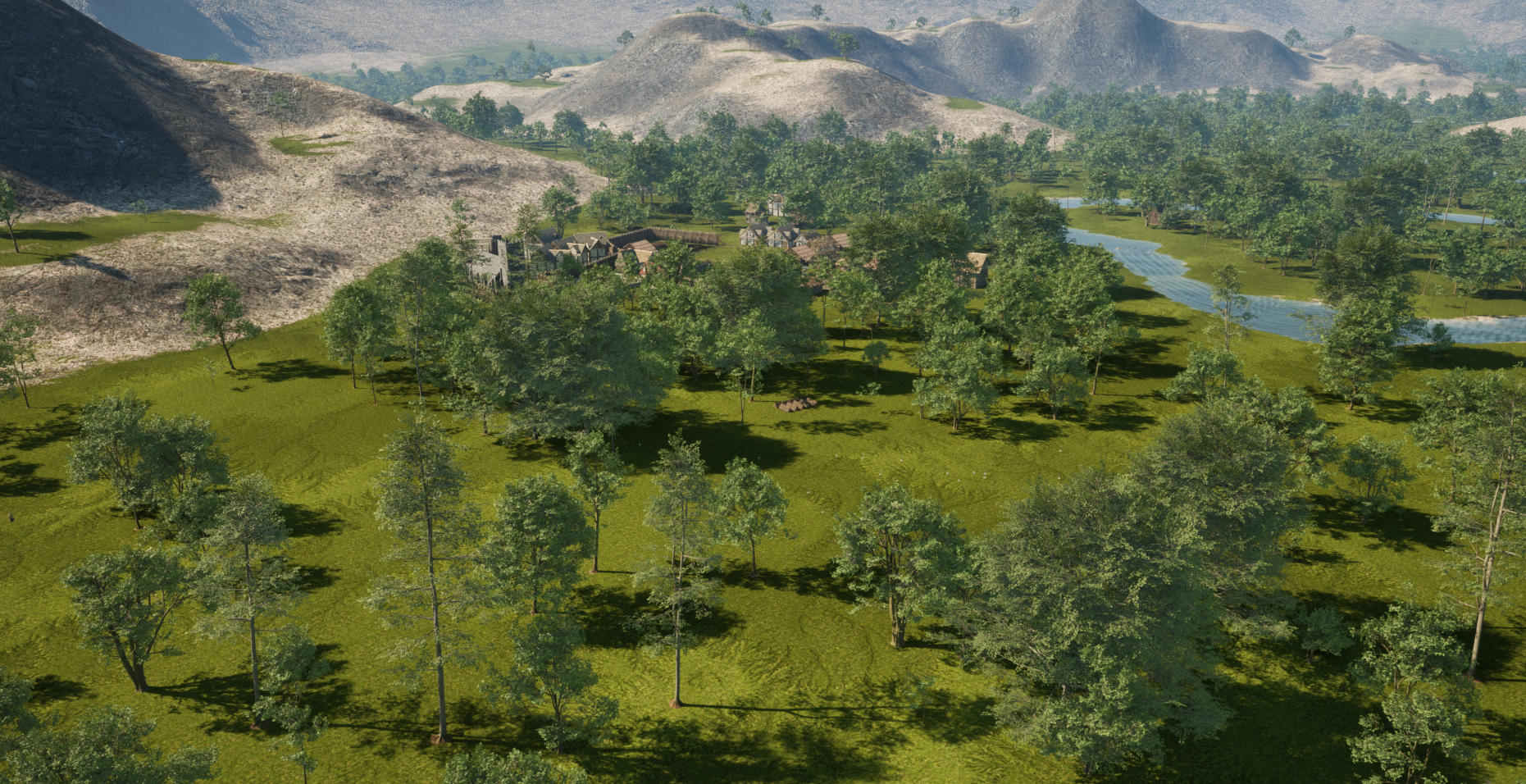 Virtual texture streaming enabled for most heavy textures, allowing landscape and trees to use higher resolution textures.