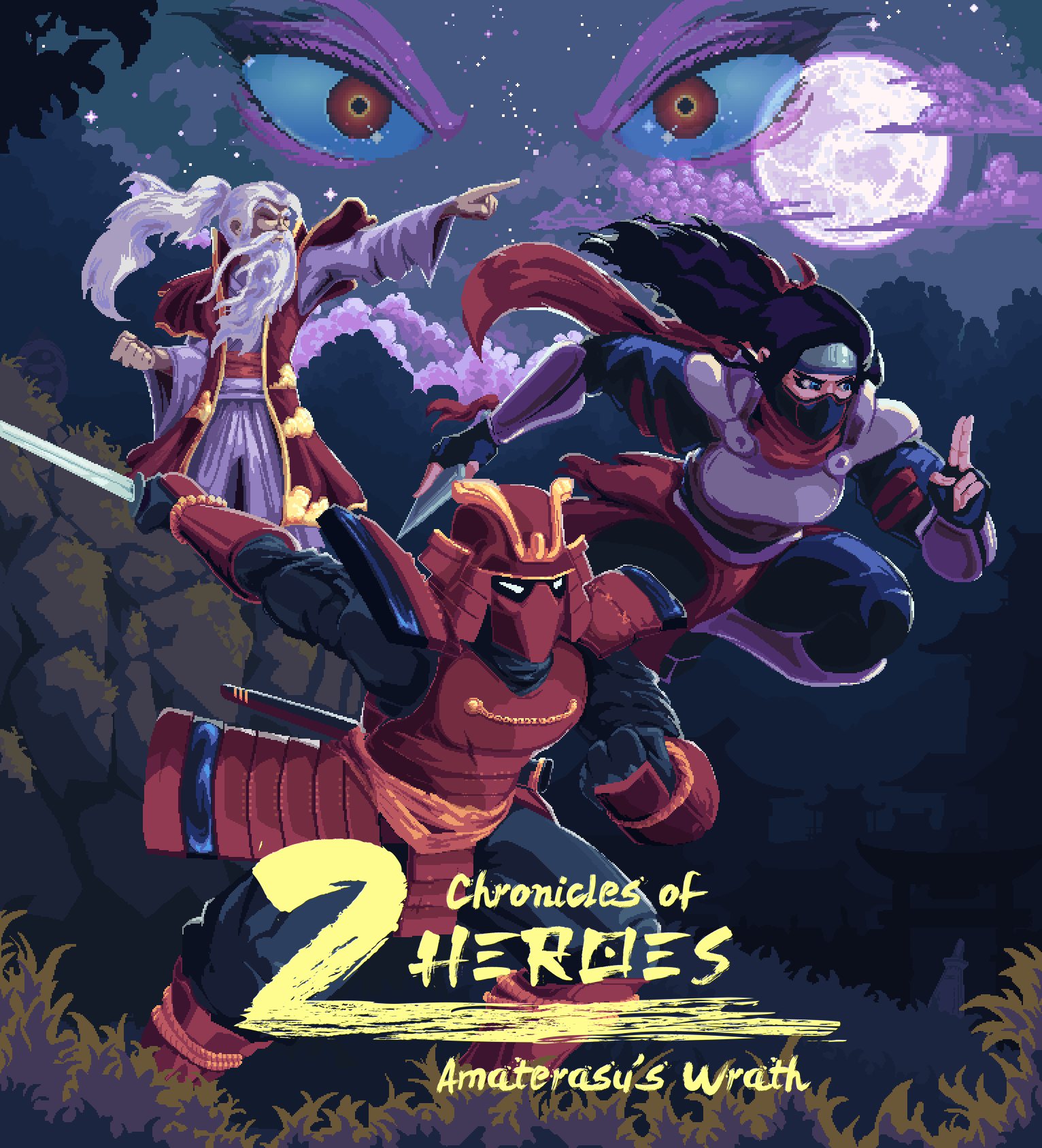 Chronicles of 2 Heroes is an intense 16-bit action platformer featuring Metroidvania elements, Japanese mythos and gorgeous pixel art. That's not all: you can switch between the protagonists in real time! Ayame and Kensei have unique, surprising combat styles that you will need to master to save feudal Japan from Amaterasu’s wrath.