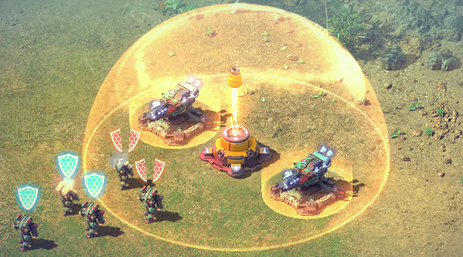 In order to compensate the inevitable damage to the defenses of their clients, Cosmocom Limited announced a free upgrade of all amplification towers with an improved field generator which will provide affected towers with an ability to successfully deactivate the shields of enemy units.