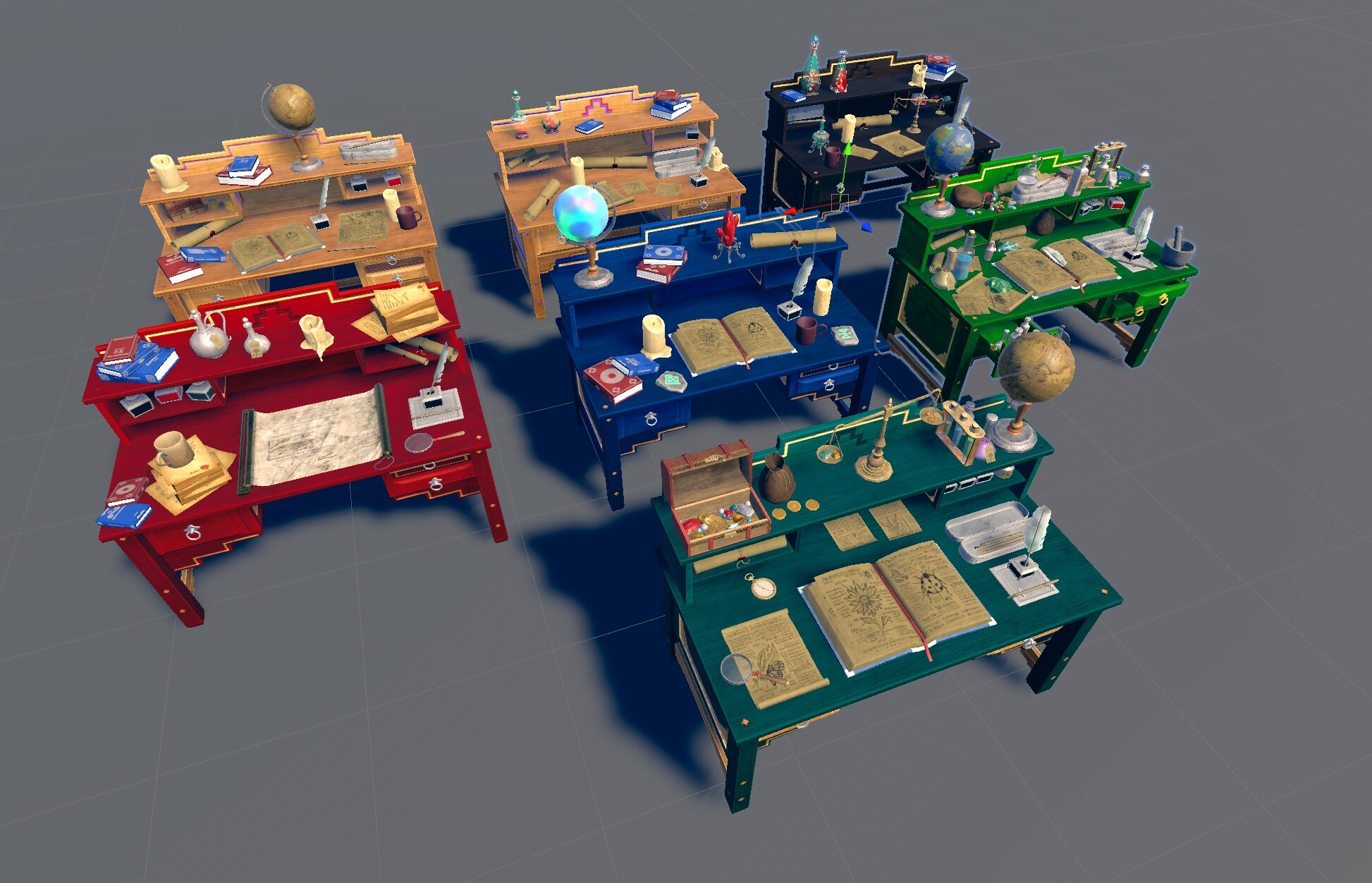 Updated the models that sit on top of the Sazi Desks so that they're all using the latest custom models intended for their model set.